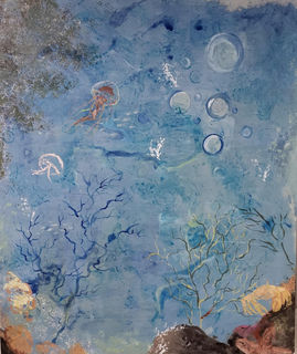 Murale faite avec les élèves des programmes d'Arts plastiques et Design graphique du Cegep de Rivière-du-Lou, pour le Centre Desjardins de soins palliatifs.
